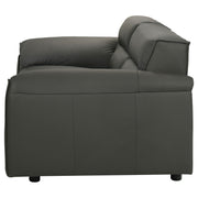This leather-upholstered loveseat offers a perfect balance of sculptural simplicity and everyday luxury. Wrapped in 100% genuine top grain leather, it showcases smooth tailoring and a bold, low-profile silhouette. Wide, gently sloped arms and deep seats create an inviting feel, while high-density full foam cushions and a sinuous spring foundation provide lasting support. With its grounded form and refined materials, this piece brings quiet sophistication to any modern space. Key Features: • Loveseat upholstered in 100% top grain leather for a soft, luxurious hand and long-term durability • Low-profile frame with wide, sculpted arms creates a relaxed yet structured silhouette • High-density full foam seating offers plush comfort with excellent shape retention • Sinuous spring support system enhances flexibility and long-lasting resilience • Orange leather finish delivers bold contrast and timeless modern style • Perfectly scaled for pairing or standalone use in sophisticated living spaces