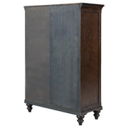 This door chest combines classic style with functional storage, making it a unique addition to your bedroom. It features six spacious drawers alongside a four-tier cabinet with tempered glass framed by solid wood, offering a display space for decor or easy access to folded clothing. The dark oak finish brings warmth and depth to the piece, while the gunmetal hardware offers a subtle modern accent. Built from poplar and oak veneers, this door chest is both stylish and durable, perfect for adding both storage and character to your space. Key Features: • Six-drawer door chest with additional four-tier cabinet • Dark oak finish adds warmth and depth to the design • Tempered glass wood-framed cabinet door for a sophisticated display • Smooth-glide drawers with felt lining in the top drawers • Poplar and oak veneer construction for durability and longevity