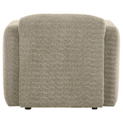 This modern accent chair brings sculptural softness and deep comfort to any living space. Wrapped in a richly textured fabric, its rounded frame flows from low-profile back to wide track arms with effortless ease. Plush foam cushioning and pocket coil seating deliver the ideal blend of sink-in softness and lasting support. With its minimal silhouette and gentle curves, this chair adds a cozy yet elevated presence to any room. Key Features: • Accent chair with sculpted form and rounded silhouette for modern minimalist appeal • Textured white fabric upholstery adds warmth and visual depth to any room • Curved track arms and low-profile frame create a cocoon-like seating experience • High-quality foam cushioning ensures soft comfort and inviting relaxation • Pocket coil seating provides lasting support and maintains its shape • Ideal as a standalone lounge chair or cozy addition to a modern seating arrangement