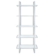 Create a well styled living space that radiates modern luxury. This contemporary bookcase delivers sleek lines of metal in your choice of gorgeous, polished finishes. The shelves are made with tempered glass for smooth, sturdy support. With five shelves total, it offers ample space to display photos, keepsakes, and more. Perfect for a living room, home office, or den, this fresh, modern bookcase is a fabulous choice for any home. Key Features: • Contemporary glass bookcase with five clear tempered glass shelves • Polished chrome frame creates a reflective and open visual effect • Electroplated metal structure enhances durability and shine • Tempered glass shelves offer strong support for books or display • Sleek vertical profile fits modern offices, dens, or studios • Includes tip-over restraint for secure placement in any room