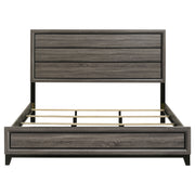This modern panel bed combines sleek form and transitional appeal to create a timeless centerpiece for any bedroom. Crafted from durable engineered wood, it features a two-tone grey oak and black finish that adds depth and contrast. The framed headboard and matching footboard showcase recessed horizontal grooves for subtle texture and visual interest. Supported by solid hardwood legs, this bed blends durability with contemporary sophistication and pairs effortlessly with a variety of bedroom furnishings. Key Features: • Transitional panel bed crafted with engineered wood for lasting support • Grey oak finish pairs with sleek black framing for modern contrast • Recessed grooves on headboard and footboard add depth and texture • Framed design creates a clean, dimensional silhouette • Black solid hardwood legs provide stability and timeless appeal • Foundation required; complements both casual and refined spaces