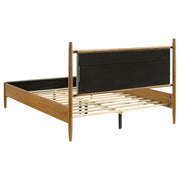 Elevate your retreat with this platform bed, where warm wood and tailored upholstery meet in harmony. The clean-lined frame highlights its mid-century modern influence, paired with a gently padded headboard for cushioned support. Crafted from rubberwood, engineered wood, and foam-filled fabric, it ensures stability without the need for a foundation. Ideal for restful nights and timeless style, this platform bed blends structure with soft sophistication. Key Features: • Queen platform bed with clean lines and padded headboard for tailored support • Light brown frame highlights wood grain for warmth and mid-century character • Streamlined silhouette blends retro charm with modern minimalism for versatility • Foam-filled fabric upholstery softens the look with subtle texture and comfort • Crafted from rubberwood and engineered wood for lasting strength and stability • Foundation-free platform design with supportive slats for reliable mattress use