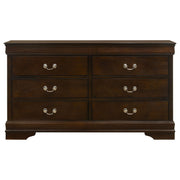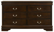 The Louis Philippe collection is highlighted by this 4-piece bedroom set that is perfect for the guest bedroom or youth bedroom. The Full bed (also available in Eastern King, Queen, and Twin) is characterized by a high headboard and low footboard, both with slightly flared styling. The nightstand and dresser have deep drawers with dovetail construction and silver bail handles for convenient pull-out and stylish appeal. Place the impressive rectangular mirror fits upon the dresser to complete the look. Built from select hardwoods and wood veneer, this traditional-style set comes with a cappuccino finish that adds a warm ambiance to the bedroom. Key Features: • A slightly higher headboard distinguishes this classic Louis Philippe style bed • Nickel finish bail drawer handles decorate drawer fronts • Dovetail drawer construction creates a sturdy drawer foundation • Crafted from rubberwood and okume veneer • Headboard only options are available to use with metal bed frames