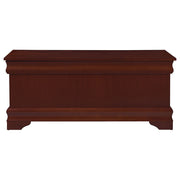 This cedar chest brings timeless elegance and storage in one, featuring a warm brown finish and traditional base molding. The flip-open top is supported by a child safety hinge for added security. Built from rubberwood, engineered wood, and basswood veneer, it offers durability and a refined profile. Inside, the fully cedar-lined interior naturally protects contents by repelling pests, absorbing moisture, and preserving freshness—ideal for linens, keepsakes, or seasonal items. Key Features: • Cedar chest with classic rectangular shape and traditional base molding for elegant appeal • Warm brown finish provides a rich, inviting tone for traditional or transitional settings • Flip-open top includes a child safety hinge for smooth and secure lid operation • Fully cedar-lined interior helps guard against moths, odors, and excess moisture • Crafted from rubberwood, engineered wood, and basswood veneer for lasting strength • Ideal for organizing blankets, keepsakes, or seasonal storage in bedrooms or entry areas