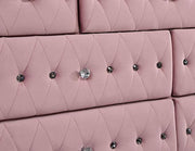 Showcase your personal taste with this bold statement piece in your bedroom. Fully upholstered in flannelette, this bed features an oversized wingback headboard with eye-catching tufting and lined with nailhead trim. The padded fabric and crystal buttons continue all throughout the bed frame and the matching case goods. Each drawer handle is made of glistening acrylic crystals, while silver-painted cabriole legs are perfect in bringing in majestic vibes that this ensemble set out to do.