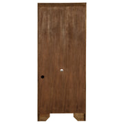 This traditional style bookcase is enhanced with beautiful molded detailing. Two bottom cabinet drawers offer concealed storage for small items. Three open shelves allow you to neatly organize your items. Molded accents on the frame and a curve at the top create an elegant display. This bookcase with doors is finished in burnished oak and supported on bracket style legs. Key Features: • Traditional bookcase with cabinet doors features open and closed storage options • Burnished oak finish highlights molded frame and panel door details on the lower cabinet • Three adjustable open shelves above provide versatile space for books or collectibles • Cabinet includes two doors with antique brass hardware and concealed storage inside • Includes rear wire management cutouts for clean cord routing in office or living space • Made from rubberwood, engineered wood, particle board, and white oak veneer