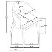 Gather in grounded elegance with this dining set, where sculptural form and graceful texture meet. A bold round pedestal table anchors the space in a burnished black finish, its open base and soft curves inviting conversation and connection. Surrounding it, barrel-back arm chairs cradle each guest in cream fabric and cushioned ease. From candlelit evenings to morning rituals, this set is a quiet celebration of balance, beauty, and belonging. Key Features: • Dining set features a burnished black pedestal table with curved edges and open base • Cream upholstered arm chairs offer barrel-back support and sculptural comfort • Soft flared frames and cushioned seats create an inviting, elevated dining experience • Round table silhouette encourages connection in intimate and open spaces alike • Crafted from rubberwood, ash veneer, engineered wood, and textured fabric • Modern organic styling blends strength, flow, and warmth in a unified setting