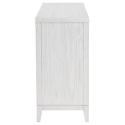 Light distressing offers depth and dimensionality to a modern six-drawer dresser. Perfect for clothing and other accessories, it features a double profile with three drawers on each side. A white finish allows wood grain details to show through, creating organic character and texture. Drawer fronts are a stepped design that adds artistry, with long antique brass toned pulls that add contrasting depth. use the wide top for personal effects like a jewelry box or valet and framed photos. Key Features: • Add easy bedroom storage with six roomy drawers in a modern dresser • Distressed white finish allows light wood grain detail to show through, adding character • Stepped drawer front design creates depth and dimensional character • Long bar pulls add contrast with a antique brass toned finish and angular design • Includes a tip-over restraint for added safety and peace of mind