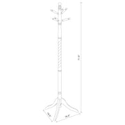 Crafted from solid rubberwood, this traditional coat rack showcases elegant detailing and lasting durability. The merlot finish enhances its rich tone, while a twisted post adds visual interest and classic appeal. Designed with two tiers of rounded pegs, it provides ample hanging space for coats, hats, and scarves. A three-leg base offers stability, making it ideal for entryways, offices, or living spaces. Key Features: • Coat rack crafted from solid rubberwood for lasting strength and stability • Merlot finish adds warmth and richness to classic or traditional interiors • Twisted center post offers a decorative touch with vintage-inspired charm • Two tiers of rounded pegs provide space for coats, hats, scarves, and accessories • Tripod base ensures balanced support and reliable freestanding use • Perfect for foyers, bedrooms, or office corners needing vertical storage