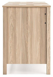 - Two-tone finish (dry, light finish over replicated oak grain; light chevron pattern)