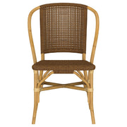 Natural texture and timeless craftsmanship come together in this artisan-inspired side chair. A gently curved rattan frame offers organic beauty and lightweight strength, while woven rattan webbing across the seat and back adds dimension and breathability. Finished in a warm brown tone that highlights each handcrafted detail, this chair brings a relaxed, sun-washed elegance to dining spaces, patios, or casual indoor settings. Key Features: • Side chair features a handcrafted rattan frame with woven seat and back detailing • Curved backrest and rounded edges create a soft, welcoming silhouette • Woven rattan webbing adds breathable comfort and artisanal texture • Natural brown finish enhances the grain and tone of the rattan throughout • Lightweight yet sturdy design is ideal for flexible or casual seating arrangements • Perfect for coastal, tropical, or laid-back transitional dining environments