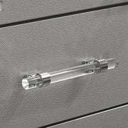 MADDIE Chest, Silver, 37 5/8"W X 17 3/8"D X 54"H, 165.66lbs. Create a room with this chest from the Maddie Collection. The acrylic legs and crystal accents bring a glamorous aesthetic. Give into your glitzy side with this opulent chest.