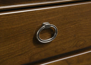 This bedroom set brings graceful elegance into the present with updated Louis Philippe styling. Each piece features crown molding, antique nickel ring pulls, and a warm brown cherry finish that radiates richness and charm. The bed softens the look with a cream upholstered headboard framed by sculpted rails and cutaway corners. Crafted from solid rubberwood, cherry veneer, and padded fabric, this collection blends timeless detail with modern comfort. Key Features: • Bedroom set features romantic silhouettes with updated Louis Philippe-inspired shaping • Brown cherry finish provides warmth and richness across each matching case piece • Cream upholstered headboard adds softness and visual contrast to the classic frame • Nightstand includes dual USB ports, felt-lined drawer • Cedar-lined bottom drawers help protect clothing from moisture and musty odors • Crafted from solid rubberwood, engineered wood, cherry veneer, fabric, and foam