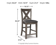 Bring a relaxed yet refined sense of good taste to your space with this 5-piece counter-height dining set. The antiqued gray wash finish gives the clean-lined design a casually cool sensibility. The table’s side shelves cleverly balance form and function while the textured gray upholstery of the stools serves up high style. This set is an inspired choice for modern farmhouse living.