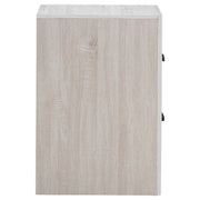 This two-drawer nightstand brings modern style and practical storage to the bedside. Its clean-lined frame complements contemporary spaces, while two spacious drawers provide room for nighttime essentials. Dark bronze handles contrast beautifully against the engineered wood construction and durable laminate veneer. Designed for everyday use, this nightstand offers both style and function in a compact footprint. Key Features: • Two-drawer nightstand with a sleek and modern silhouette • Barrel oak finish enhances the warm, natural wood grain look • Spacious drawers provide storage for bedside essentials and more • Sturdy engineered wood construction ensures lasting durability • Matte dark bronze handles offer a stylish contrast to the finish • Durable laminate veneer resists scratches, stains, and wear