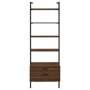 Elevate your home with this modern three-piece bookshelf set, combining sleek design with practical storage solutions. This set features two open shelf bookcases and one bookcase with drawers, each offering a refined and airy ambiance that complements any contemporary space. The open shelves are perfect for showcasing books, decor, and personal treasures, all set within a black metal frame that adds stability and minimalist appeal. The central bookcase includes two drawers, providing hidden storage to keep your space organized and clutter-free. Finished in a warm walnut tone, this versatile bookshelf set is ideal for creating a cohesive, stylish display in your living room, home office, or dining area. Key Features: • Three-piece bookshelf set includes two open shelf bookcases and one bookcase with drawers • Sleek, modern design with black metal frames and warm walnut finish • Six open shelves per bookcase for ample display space • Central bookcase features two drawers for some enclosed storage • Ideal for living rooms, home offices, or dining areas to create a cohesive, stylish look