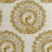 Seemingly circular patterns in this throw people actually are stylized peacock designs. With a clean ivory backdrop, it's a perfect piece for an art deco collection.