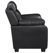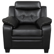 Sleek and contemporary, this two-piece set is perfect for an entertainment room. Full of plush cushioning, the backs are complete with extra support and padded head rests. The included sofa and loveseat feature button tufting. Rounded and padded pillows adorn the arm rests, creating welcoming support. The bold, neutral hue works well with a variety of decor motifs and colors. Key Features: • Stylish stationary sofa collection • Perfect for small spaces • Soft, breathable, black leatherette upholstery • Ultra-plush headrest and armrests • Subtle tufting on backrests for added style • Durable kiln dried hardwood frame