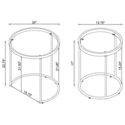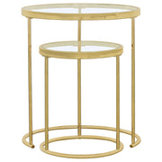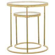 Elevate your living space with this stylish two-piece nesting table set. Featuring clear tempered glass tops and a sleek gold electroplated steel frame, these round tables provide both convenience and modern elegance. The clean, minimalist design seamlessly blends into various decor styles, offering functionality and sophistication. Ideal for small spaces, these nesting tables allow you to easily organize your items while adding a touch of luxury to your home. Key Features: • Two-piece nesting table set with round tempered glass tops for a modern, sleek design • Gold electroplated steel frame offers a polished, durable look with a luxurious finish • Versatile nesting design allows easy storage and repositioning, ideal for flexible spaces • Clear tempered glass tops ensure durability while providing an easy-to-maintain surface • Gold finish enhances contemporary living spaces with a sophisticated and chic touch • Perfect for small spaces, providing practical functionality and stylish accent solutions