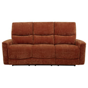 Softly tailored and built for comfort, this reclining sofa invites everyday relaxation with ease. Deep cushions and plush chenille upholstery wrap you in warmth, while channel tufting along the back enhances support and flow. Smooth manual recliners extend at your fingertips, offering personalized comfort from seat to seat. Framed in durable wood and metal, it brings a perfect balance of softness, structure, and restorative ease to any living room. Key Features: • Reclining sofa with manual levers and deep cushions for laid-back living room comfort • Dark brown chenille upholstery adds soft texture and cozy warmth to the frame • Channel-tufted backrests offer targeted support and gentle contouring • Padded armrests provide comfort from every angle while lounging or reclining • Crafted from fabric, metal, plywood, and foam for durable everyday relaxation • Perfect for casual living rooms seeking cozy function with easygoing style