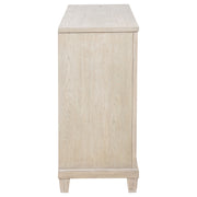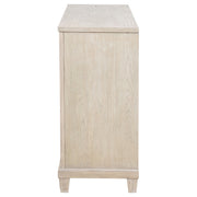 Softly structured and beautifully balanced, this six-drawer dresser brings timeless charm to the bedroom. Framed with clean lines and stepped trim, it offers generous storage behind a refined facade. The washed oak finish reveals natural wood grain, while polished nickel ring pulls add a hint of shimmer. Crafted from poplar, oak veneer, and engineered wood, it brings enduring grace and practical elegance to daily living. Key Features: • Six-drawer dresser with clean lines and stepped trim for classic bedroom appeal • Washed oak finish highlights soft wood grain with breezy natural texture • Polished nickel ring pulls add gentle shine and traditional detail • Spacious drawers offer versatile storage for clothing or linens • Crafted from poplar, engineered wood, and oak veneer for lasting strength • Tip-over restraint included for added safety and everyday stability
