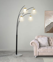 Enchant your space with this radiant crystal floor lamp, a captivating arc tree design that sparkles with ambient lighting. Its hanging crystals shimmer delicately from five graceful arms, casting a magical glow that elevates any room. Perfect for luxurious settings, this statement piece blends modern elegance with timeless allure. Whether illuminating a grand gathering or a quiet evening, this lamp creates an atmosphere of opulence and serenity with its breathtaking design. Key Features: • Crystal floor lamp with an arc tree design for stunning and luxurious illumination • Sleek black finish for a bold, modern, and sophisticated aesthetic • Five-arm arc tree structure creates a dramatic focal point in any room • Hanging crystals provide ambient lighting for living rooms or dining areas • Crafted from heavy gauge metal for lasting durability and sturdy support • Features a convenient foot switch for seamless and effortless operation